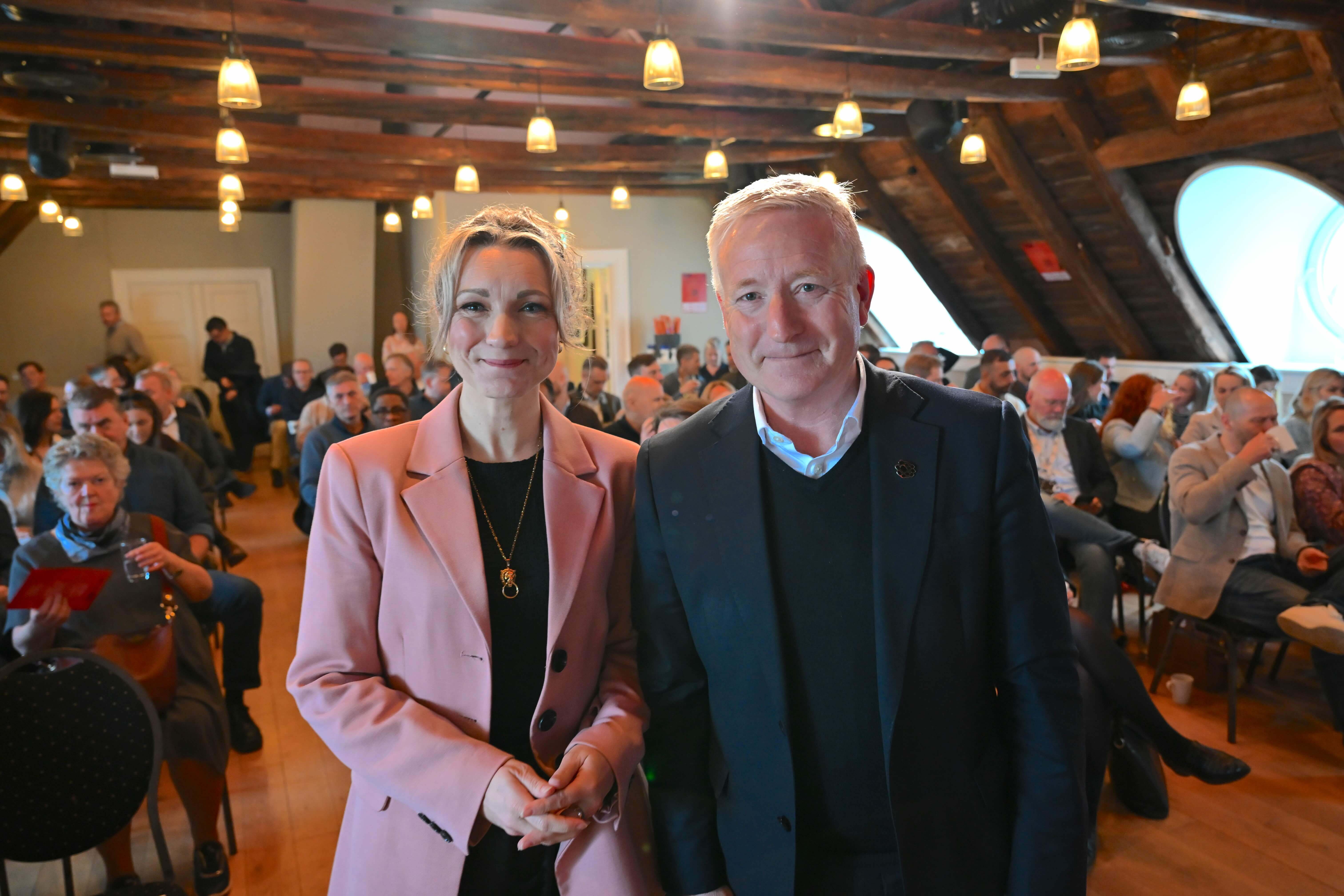 Digitaliseringsminister Karianne Tung (Ap) innledet KI-konferansen fredag. Her sammen med Harald Minge, administrerende direktør i Næringsforeningen i Stavanger-regionen. Foto: Arne Birkemo