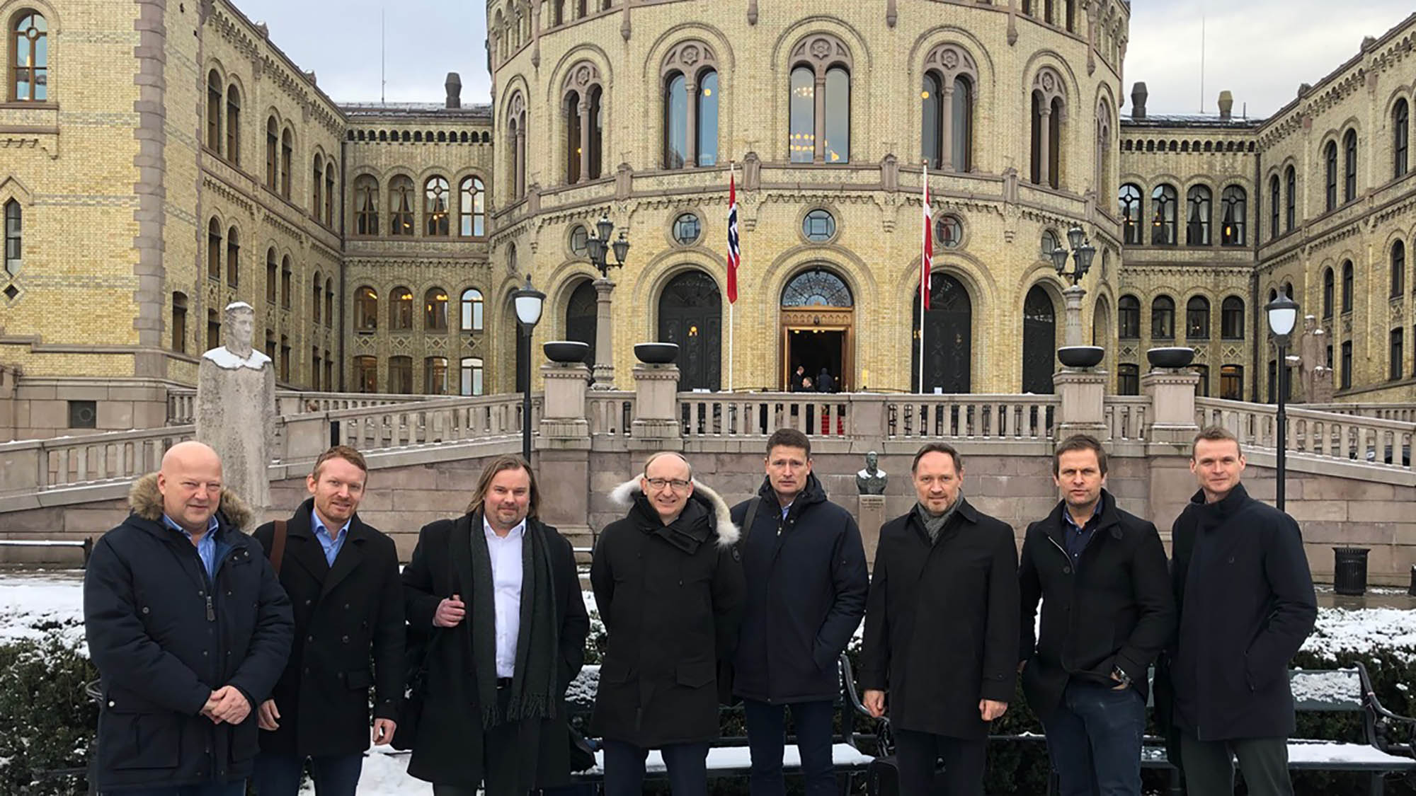 Medlemmeme i Norsk Industri og Stiim Aqua Cluster representerer en stor andel av leverandørindustrien som satser langsiktig mot havbruksnæringen. Dette bildet ble tatt da en felles delegasjon var i Oslo tildigere i år. Fra venstre: Ole D. Kvilhaug, Andreas Heskestad, Tord Ludvigsen, Eivind Helland, Kjartan Gilje, Stål Heggelund, Arne Vagle og Lars Laukeland.