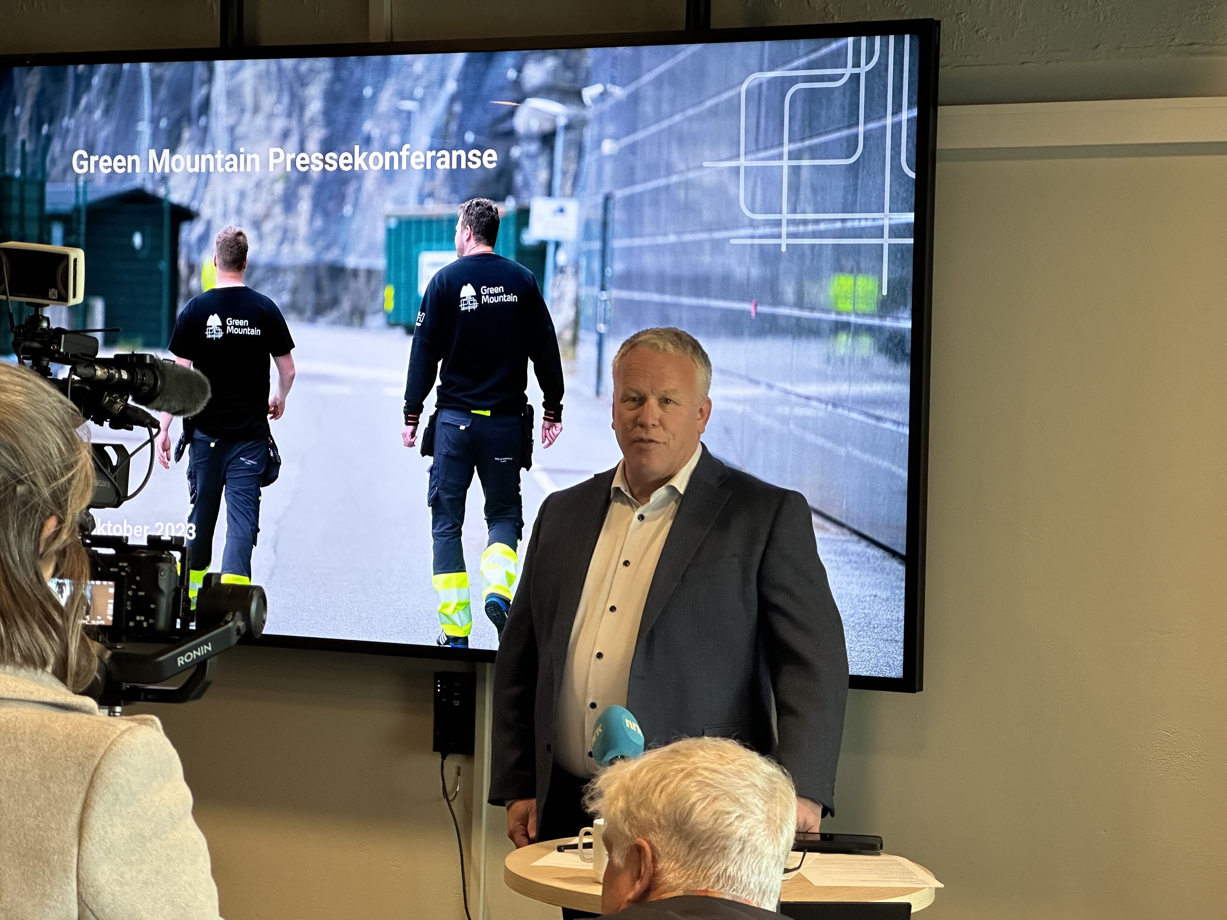 Svein Atle Hagaseth, administrerende direktør i Green Mountain, på pressekonferansen i dag.
