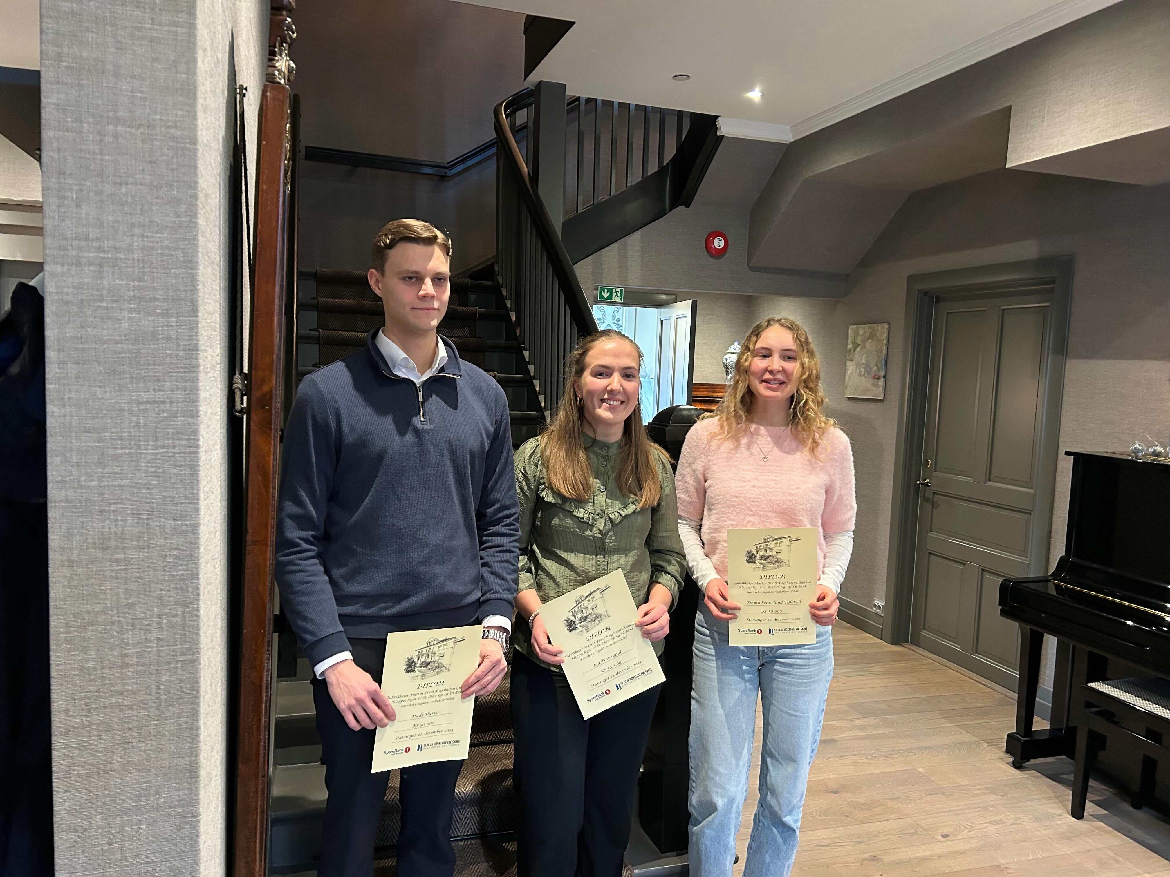 Stipendoverrekkelsen fant sted i SpareBank 1 Sør-Norge sin representasjonsbolig i Øvre Strandgate i Stavanger mandag 22. desember.