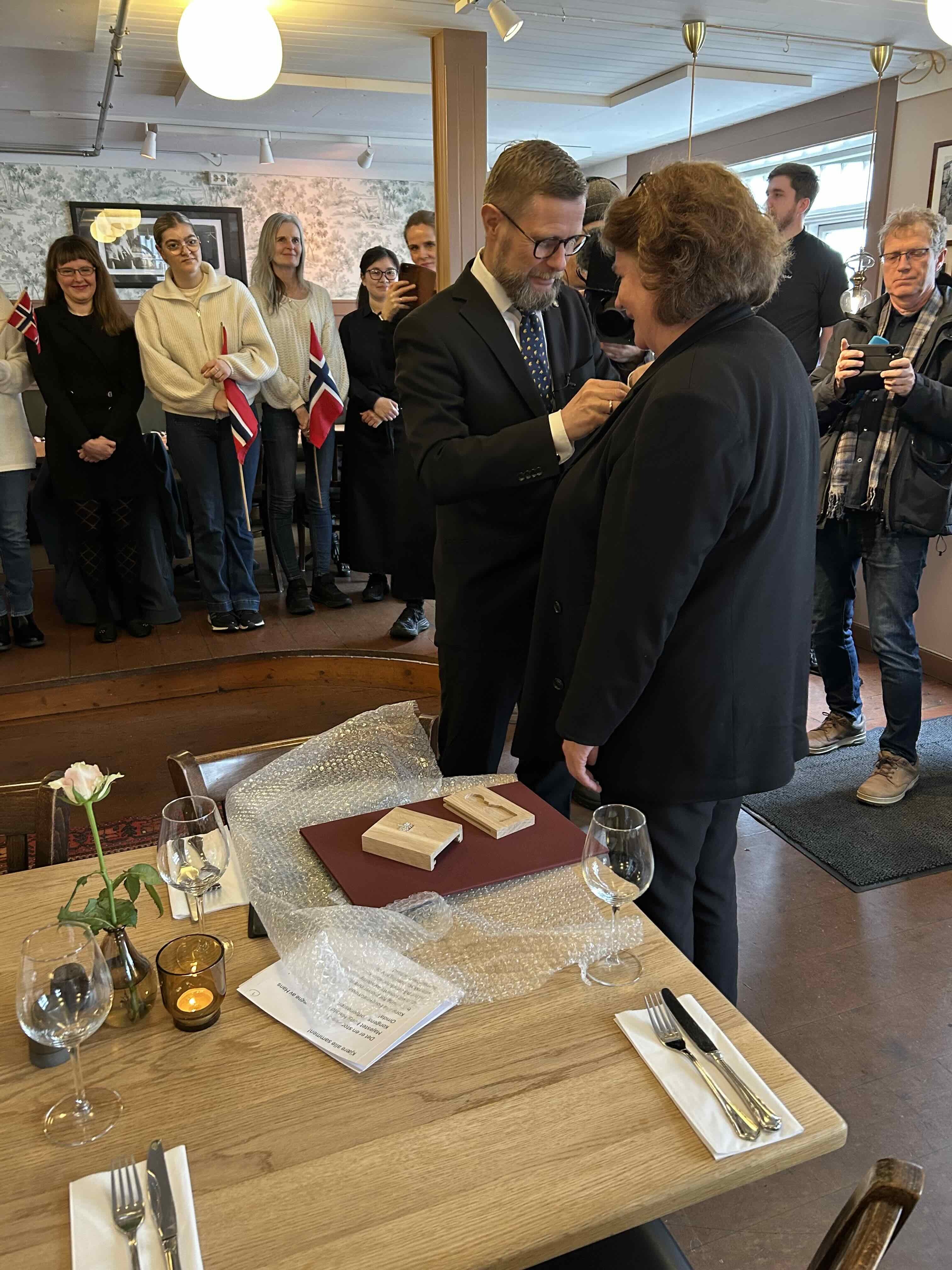 – Det er en stor ære, på vegne av Hans Majestet Kong Harald V, å overlevere Kongens Fortjenestemedalje til Eli Laupstad Omdal, sa Høie.