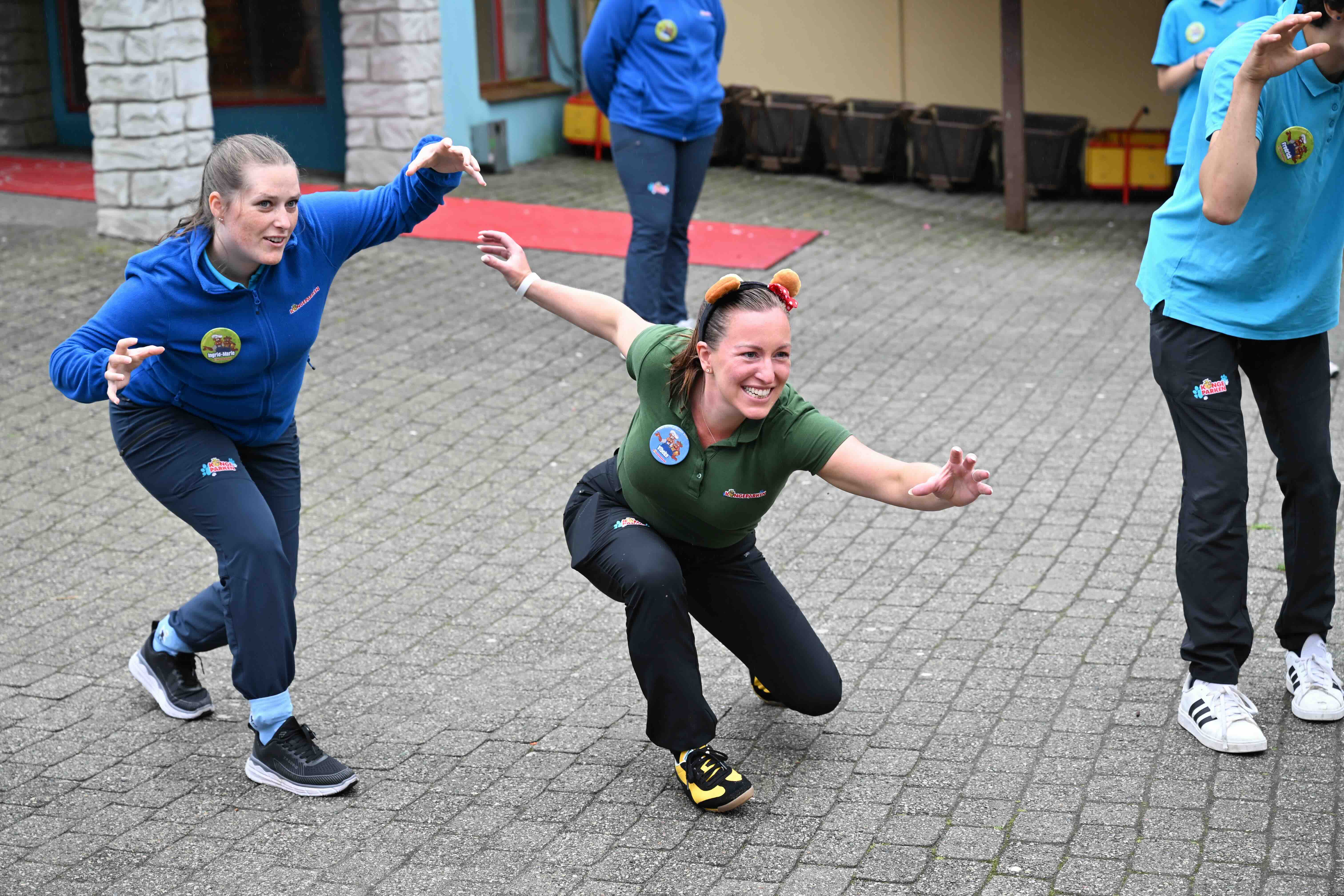 Eventyrer Ingrid Marie Bjørnsen og hoffsjef Vibeke Fjordbakk slår seg løs da alle skulle imitere en løve.