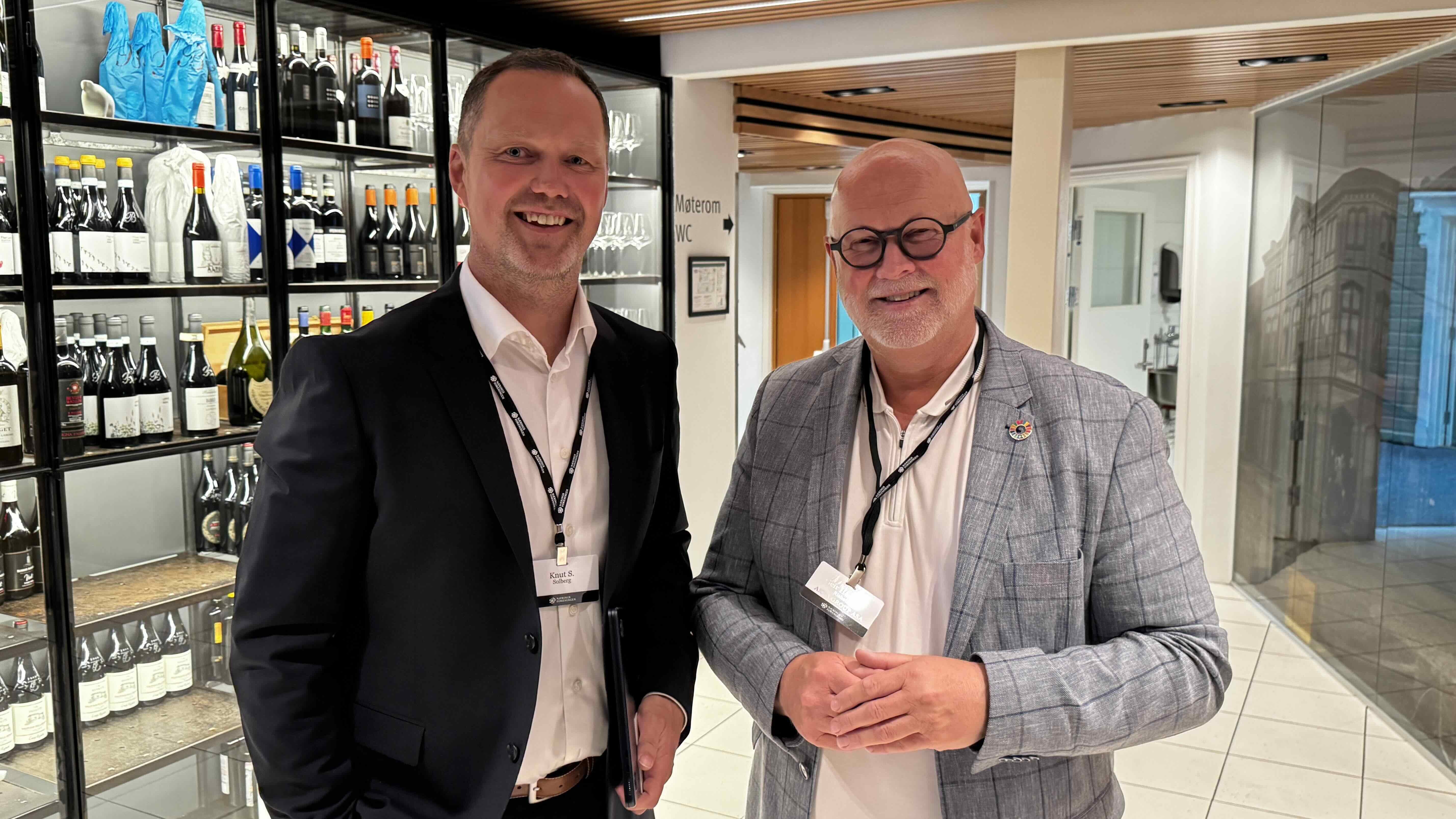 Konferansier Knut Skeie Solberg og leder for Næringsforeningens lokalstyre i Dalane, Geir Henning Risholm. Foto: Arne Birkemo