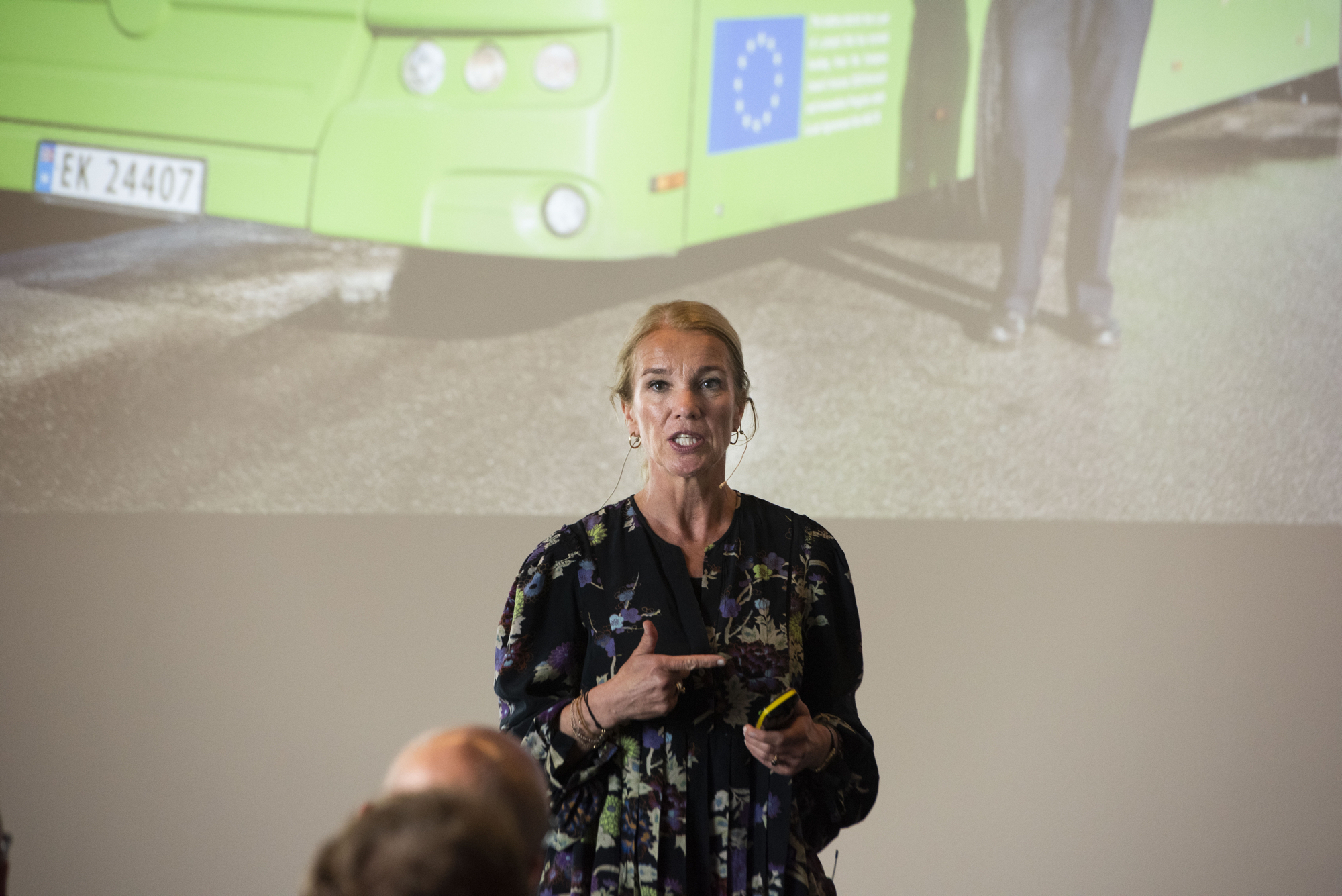 Hun er i ferd med å avslutte en stor presentasjon av noen av prosjektene i Stavangers leveranse til Triangulum på Skur2 ytterst i Vågen av Stavanger. Hver av de fem prosjektdeltakerne har snakket om sin rolle, og sine underprosjekter av Triangulum. De fem er Stavanger kommune, Rogaland fylkeskommune, Lyse, Universitetet i Stavanger og Greater Stavanger.