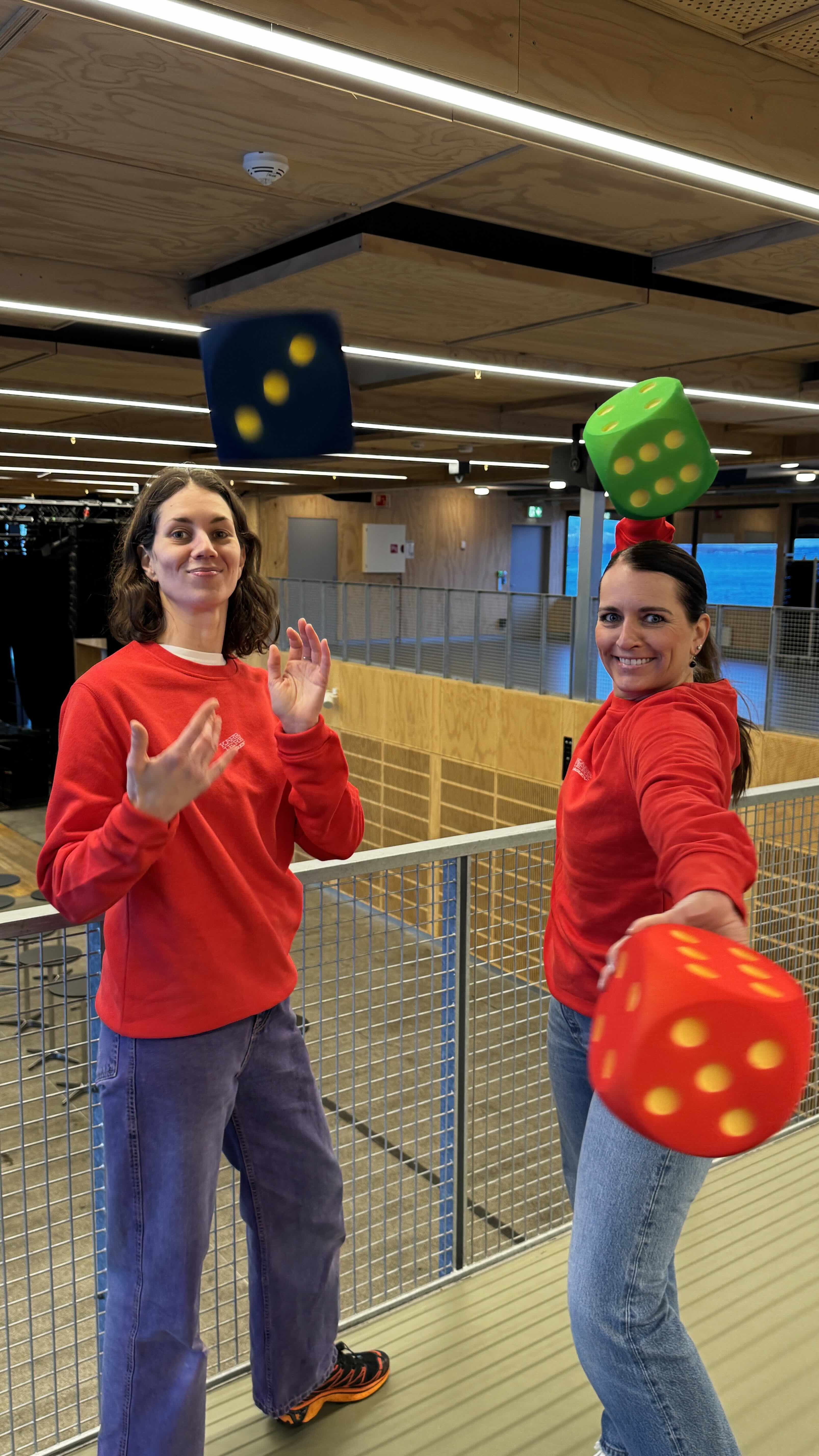 Maria Mår Johansen og Christin Møller røper at du på standen til Trainee Sør-Vest kan trille terningen og vinne gavekort til valgfri konsert på Fiskepiren, samt gavekort på 1000 kroner på restauranten Seid.