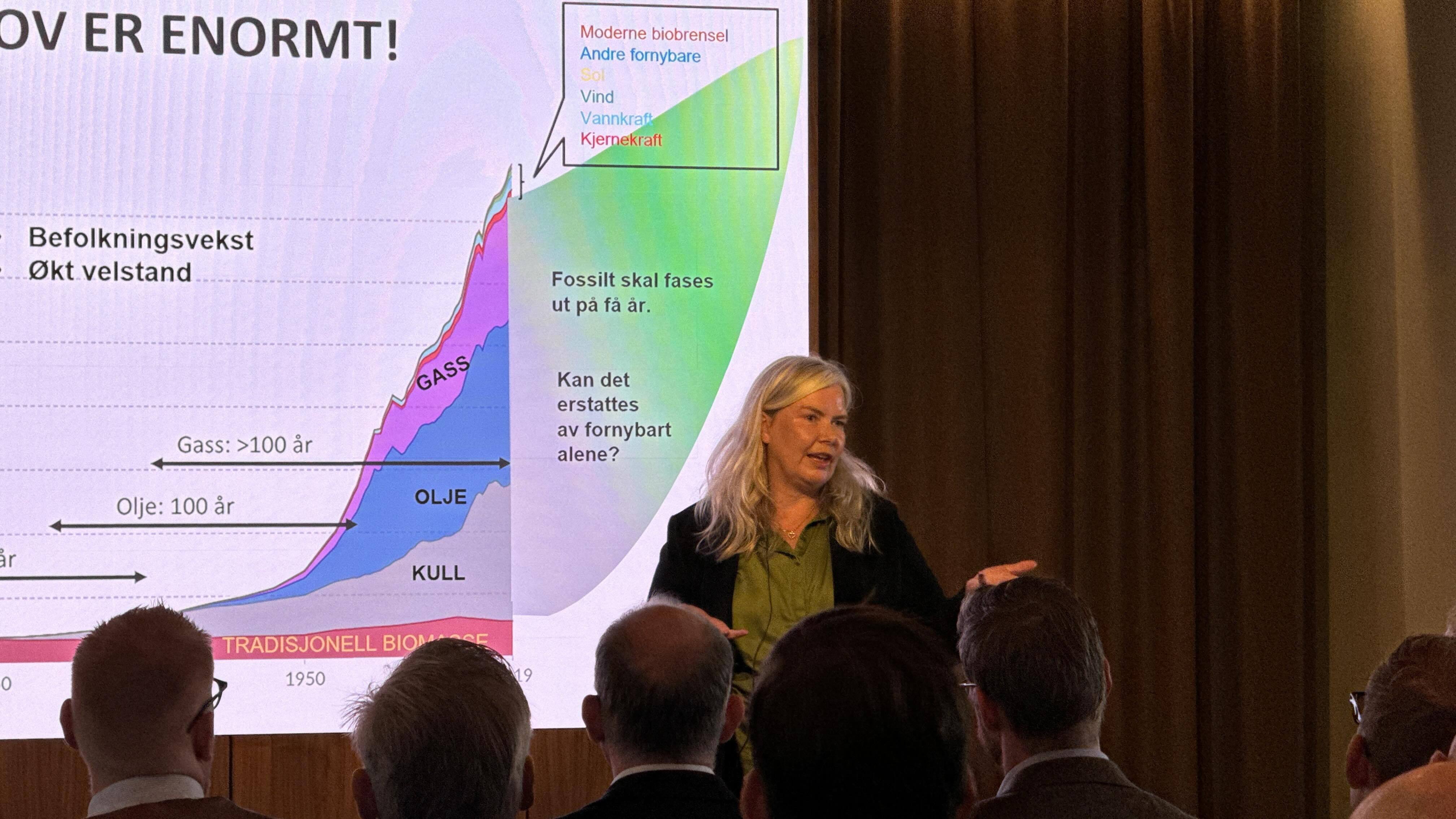 – Det er helt usannsynlig at kraftbehovet skal løses med vind og sol. Kjernekraft er løsningen. Man har ingen Co2-utslipp og ett gram uran er nok energi til din familie i ett år. Dette er ekstremt energieffektivt. Avfallet som du bruker i løpet at ett liv, tilsvarer én appelsin, sa hun under foredraget sitt.