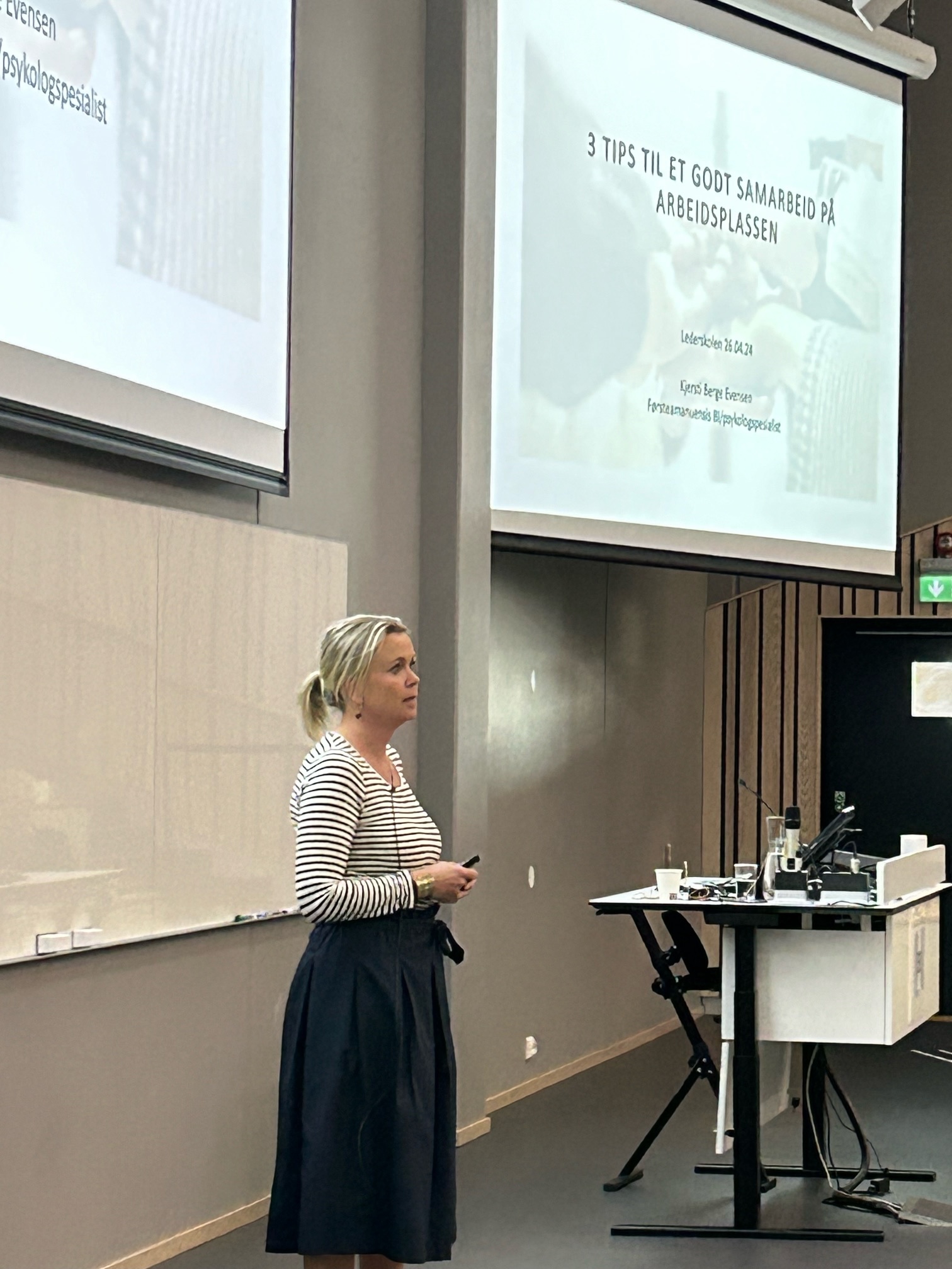 Kjersti Berge Evensen ga gode tips om hva som skaper godt samarbeid og hva som hindrer samarbeid i team.«Stammespråk»