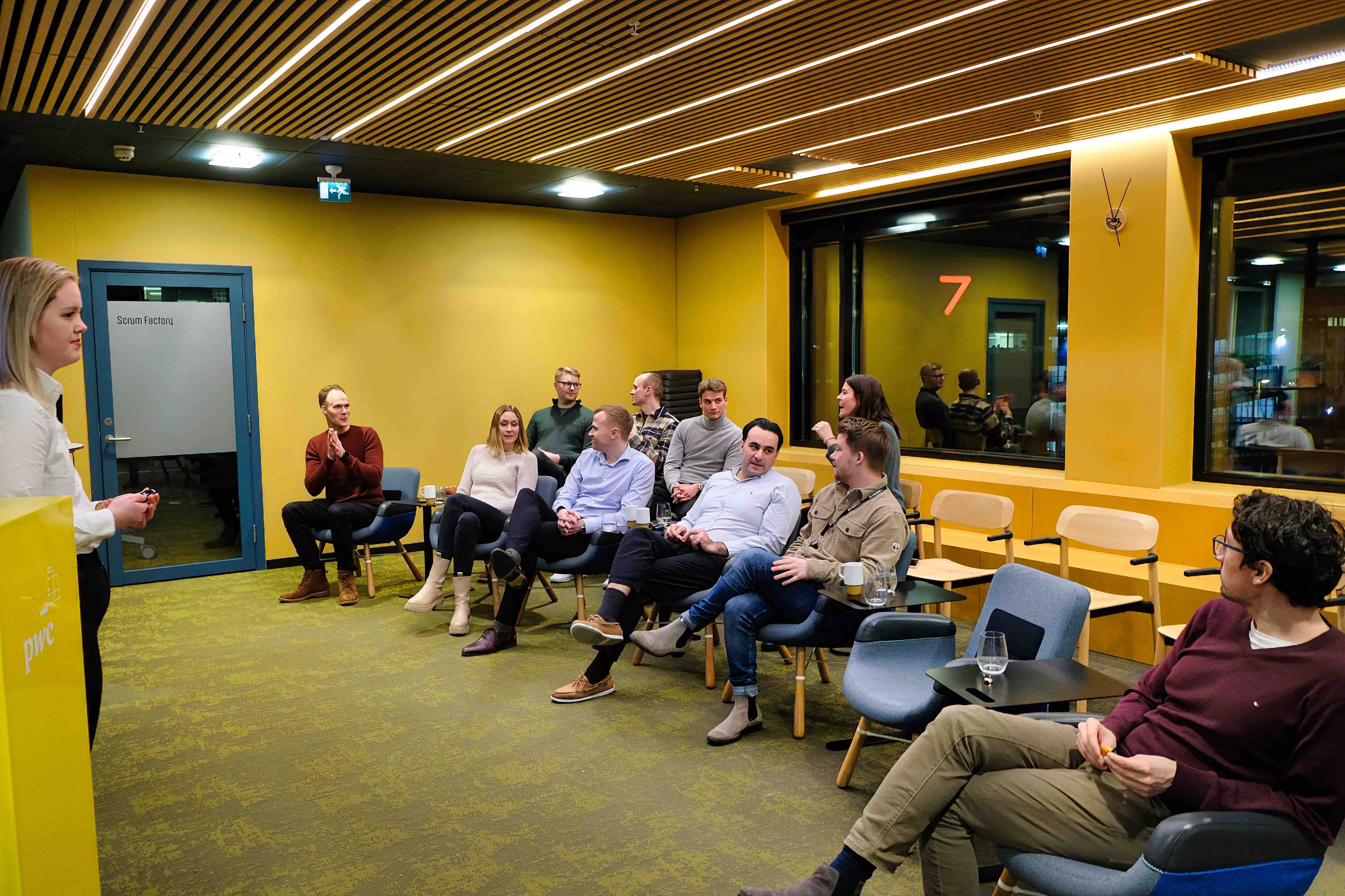 Diskusjonene er ivrige og verdifulle når 12 unge ledere møtes en tirsdagskveld på PwC Experience center. Kveldens tema er lønn, et vanskelig tema uansett alder. Ledernettverket har tidligere vært innom problemstillinger som medarbeidersamtalen, ledelse i motgang, innovasjon og ledelse, og personlig utvikling.