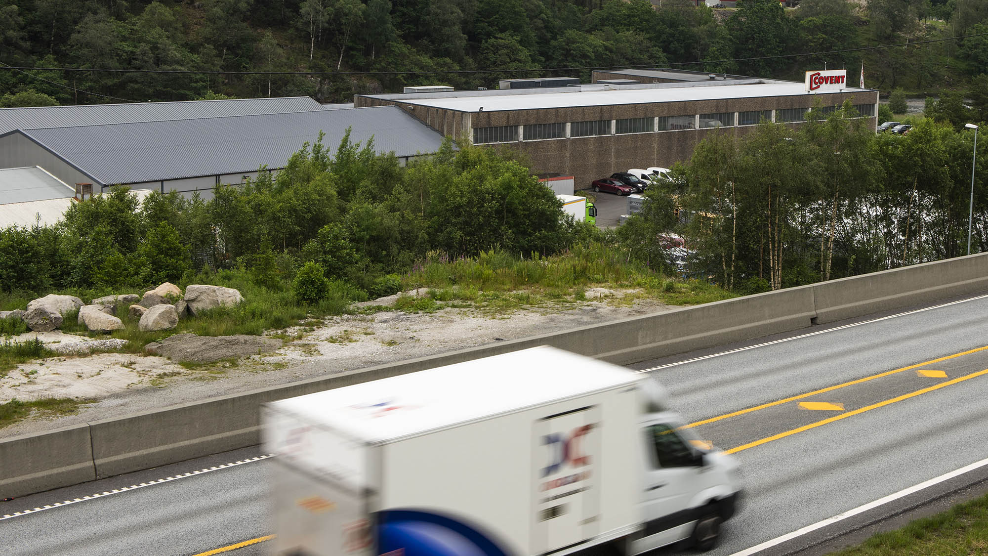 Man kan så vidt skimte Covents bygg fra E39, og de fleste av oss kjører bare forbi uten å vite at Norges største leverandør av ventilasjonssystemer ligger nettopp her. Foto: Lars Idar Waage