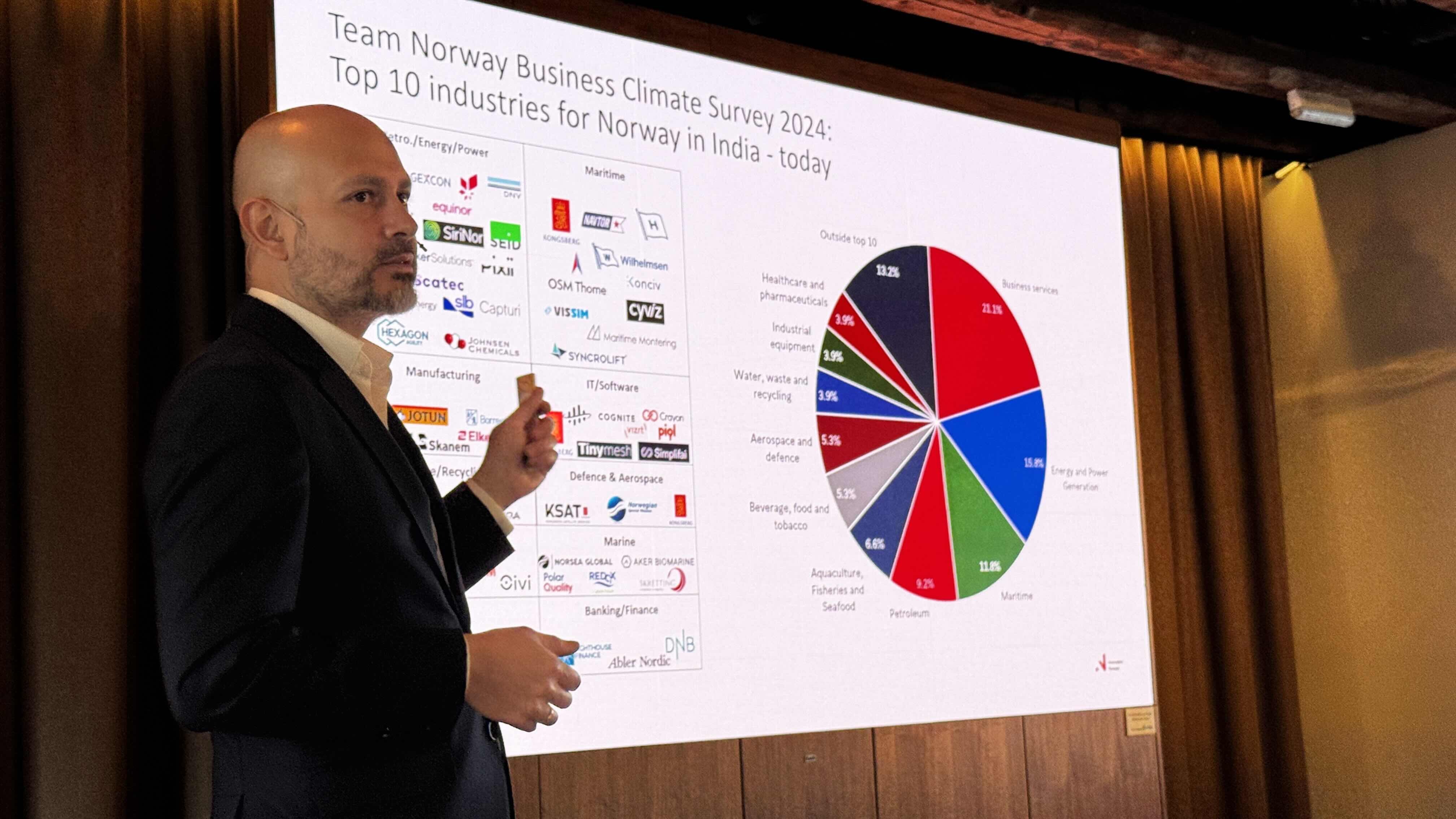 Han sier Indias økonomi vokser i et enormt tempo. Valdes Carter sier det er muligheter for norske bedrifter innen energi, fornybart, maritim sektor, fiske, hydrogen, landbruk og flere andre industrier.