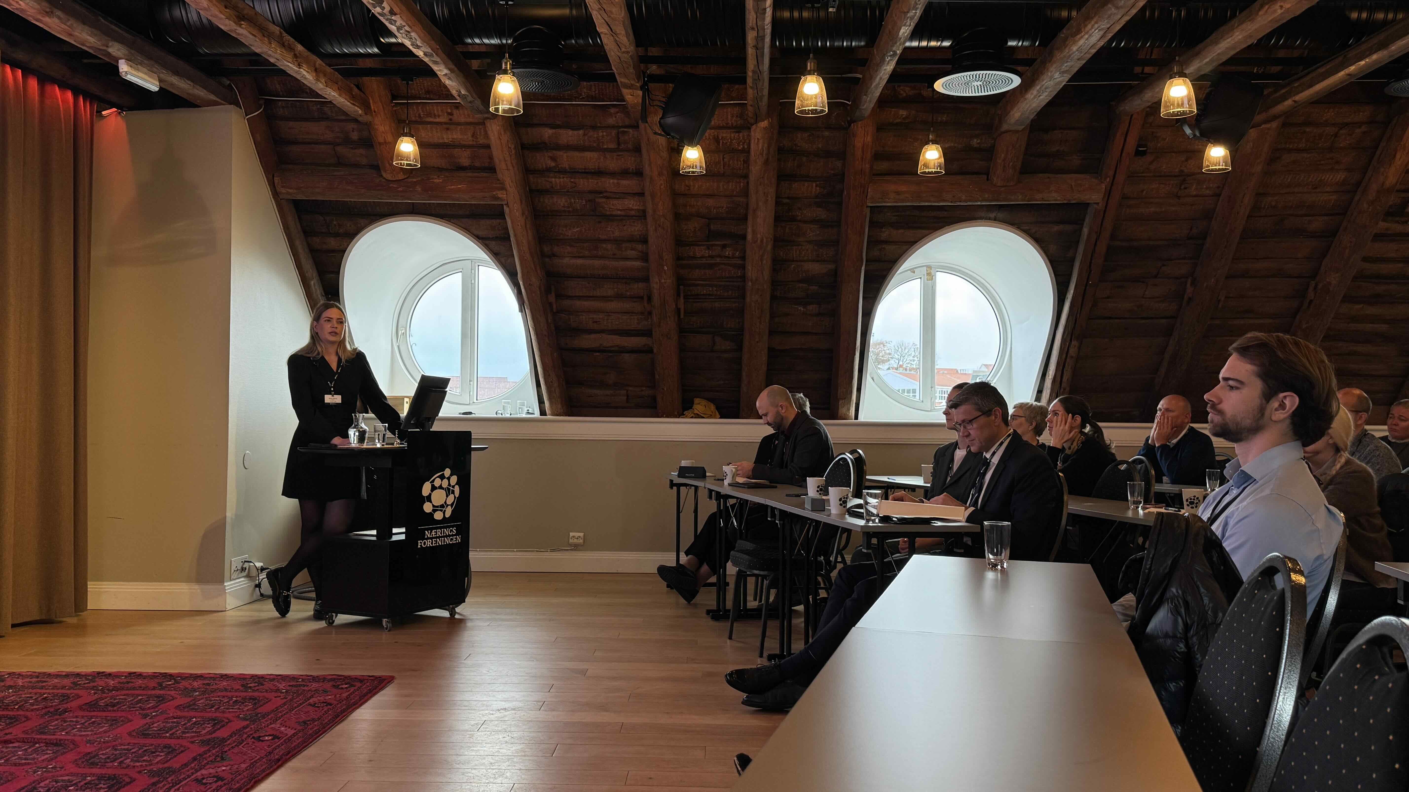 Advokatfullmektig Anne Marie Skeie fra Simonsen Vogt Wiig snakket om hvordan man oppfyller de nye, strenge kravene til vektlegging av klima og miljøhensyn ved offentlige anskaffelser. Her er det både utfordringer og muligheter.