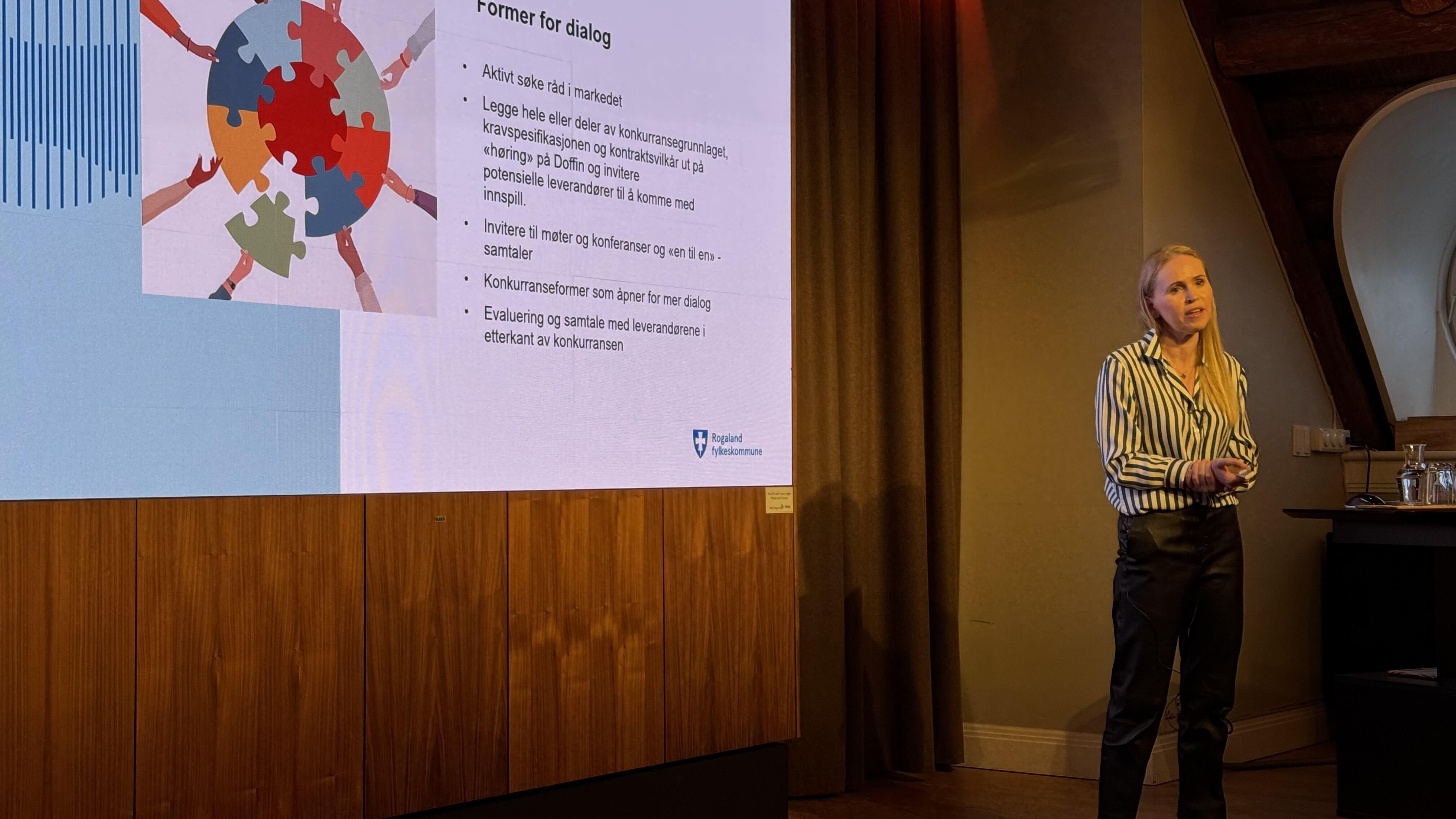 Karianne Mæle Thuestad, innkjøpsleder i Rogaland fylkeskommune, fortalte både om kommende anbud fra fylkeskommunen: