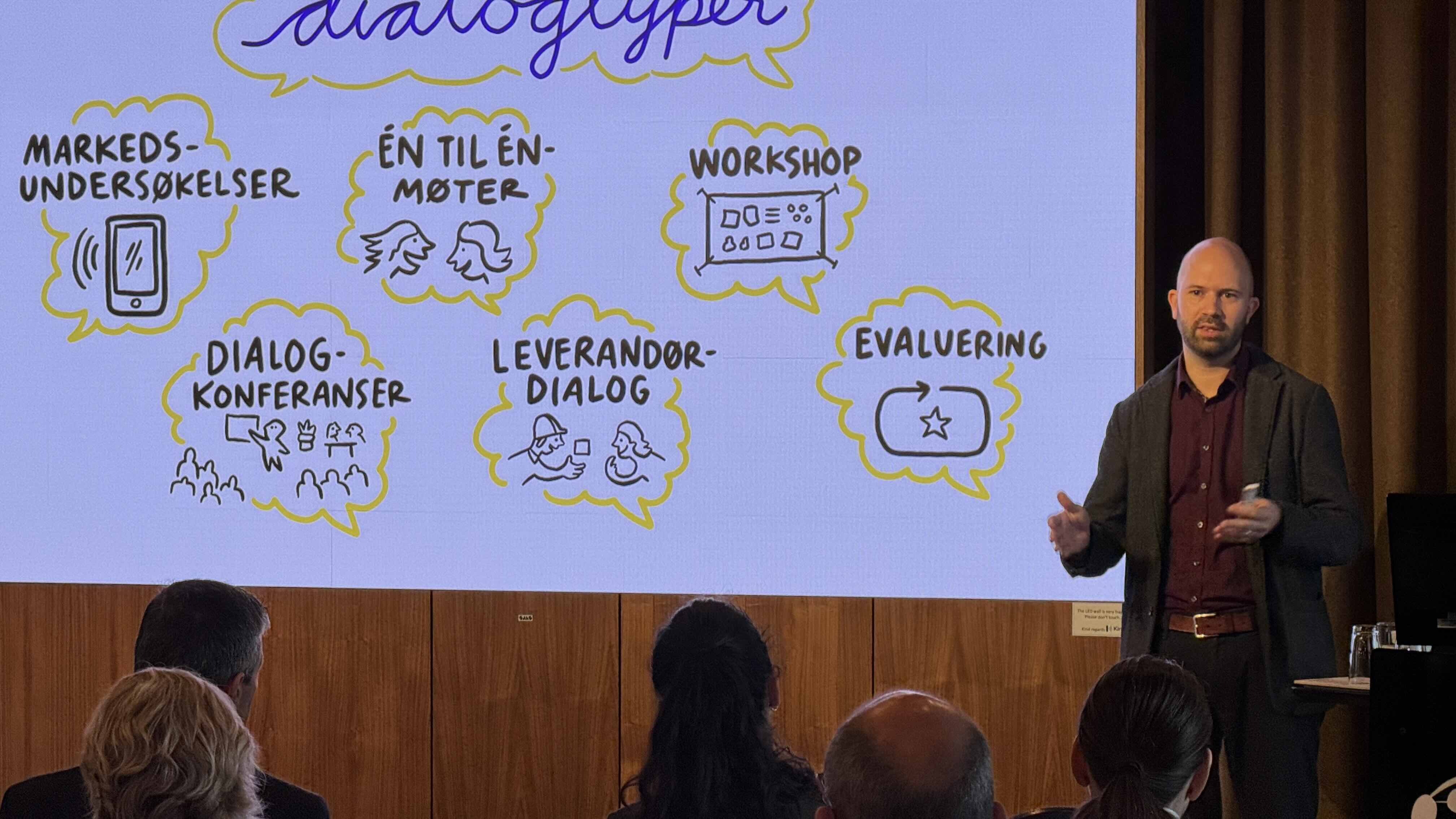 Her handler det om å fortelle markedet hva det offentlige trenger. Samtidig kan markedet forklare oppdragsgiver – det offentlige – hvordan de har tenkt å løse problemet.