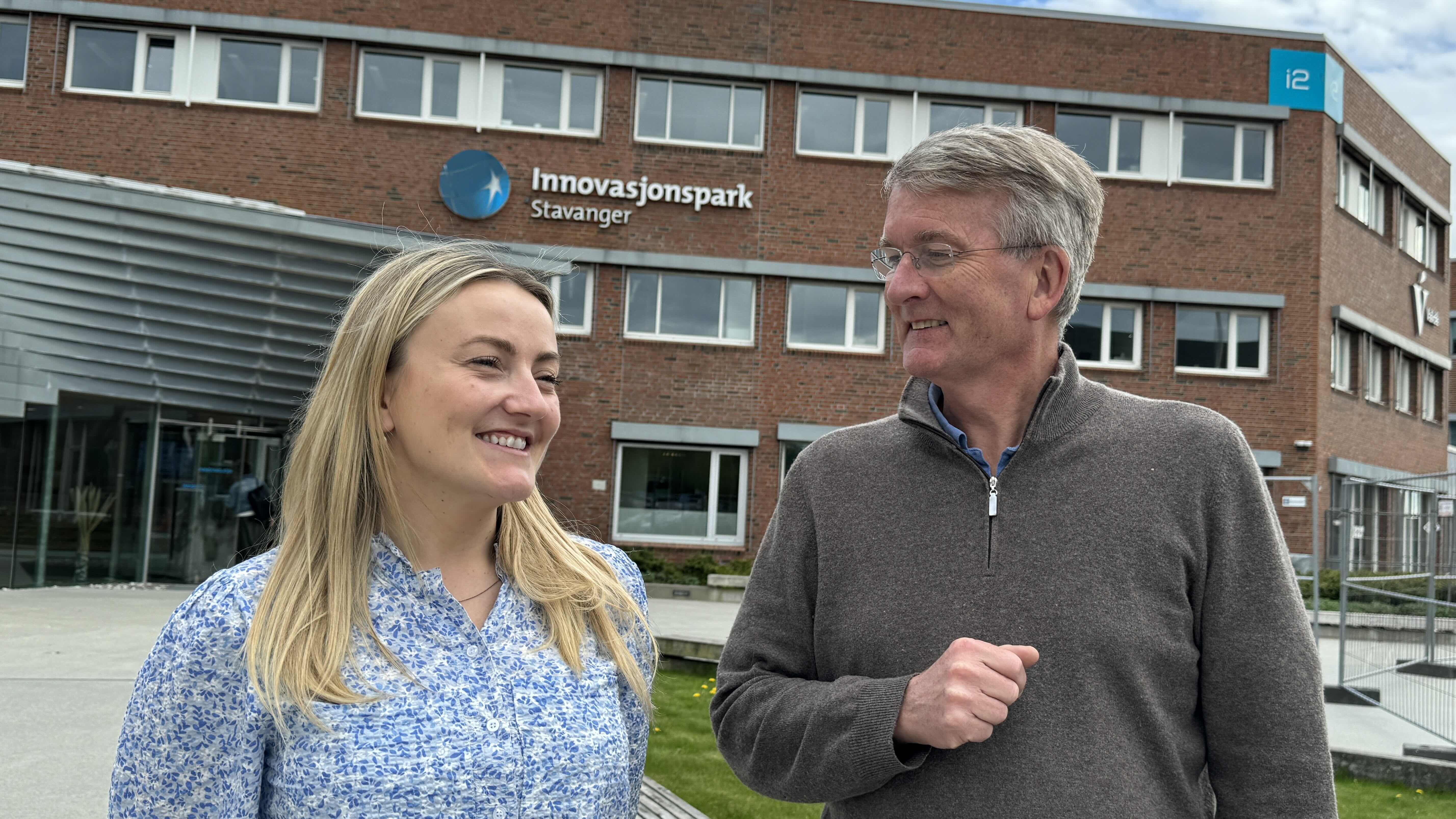 Birgitte Ruud Kosberg og Jostein Kalsheim har gode diskusjoner på styrerommet til Innovasjonsparken Stavanger. Foto: Arne Birkemo