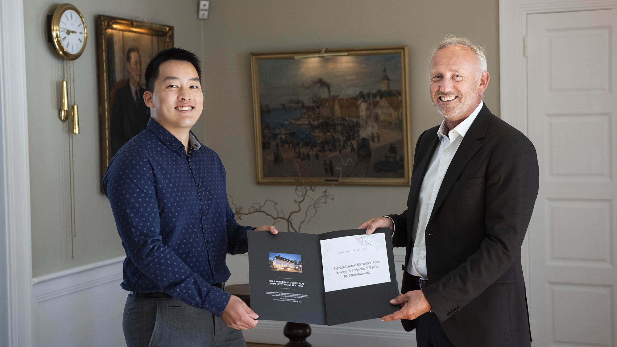 – Vi har en finansklynge og et investormiljø her i regionen som er både sterk og spennende. Miljøet omfatter store aktører som Skagen Fondene og Equinor, alle de store bankene, Hitec Vision, Nysnø, og en rekke mindre, familieeide selskaper. I den omstillingen vi er inne i, vil finansklyngen bli stadig viktigere for oss. Da har vi behov for talenter som Owen Yang, og jeg håper dette stipendet vil bidra til at han søker seg til Stavanger når han er ferdig med studiene. Jobbmulighetene vil være gode, sier Slette.