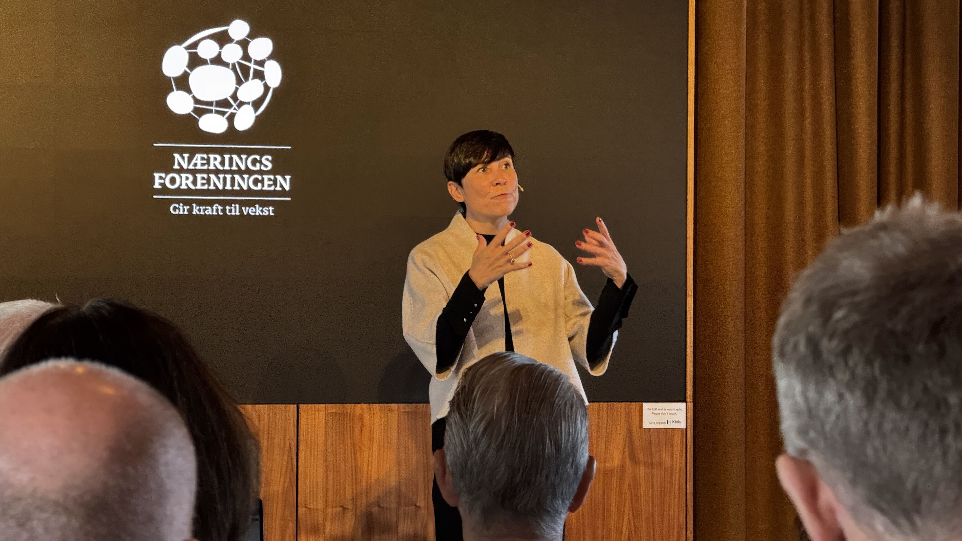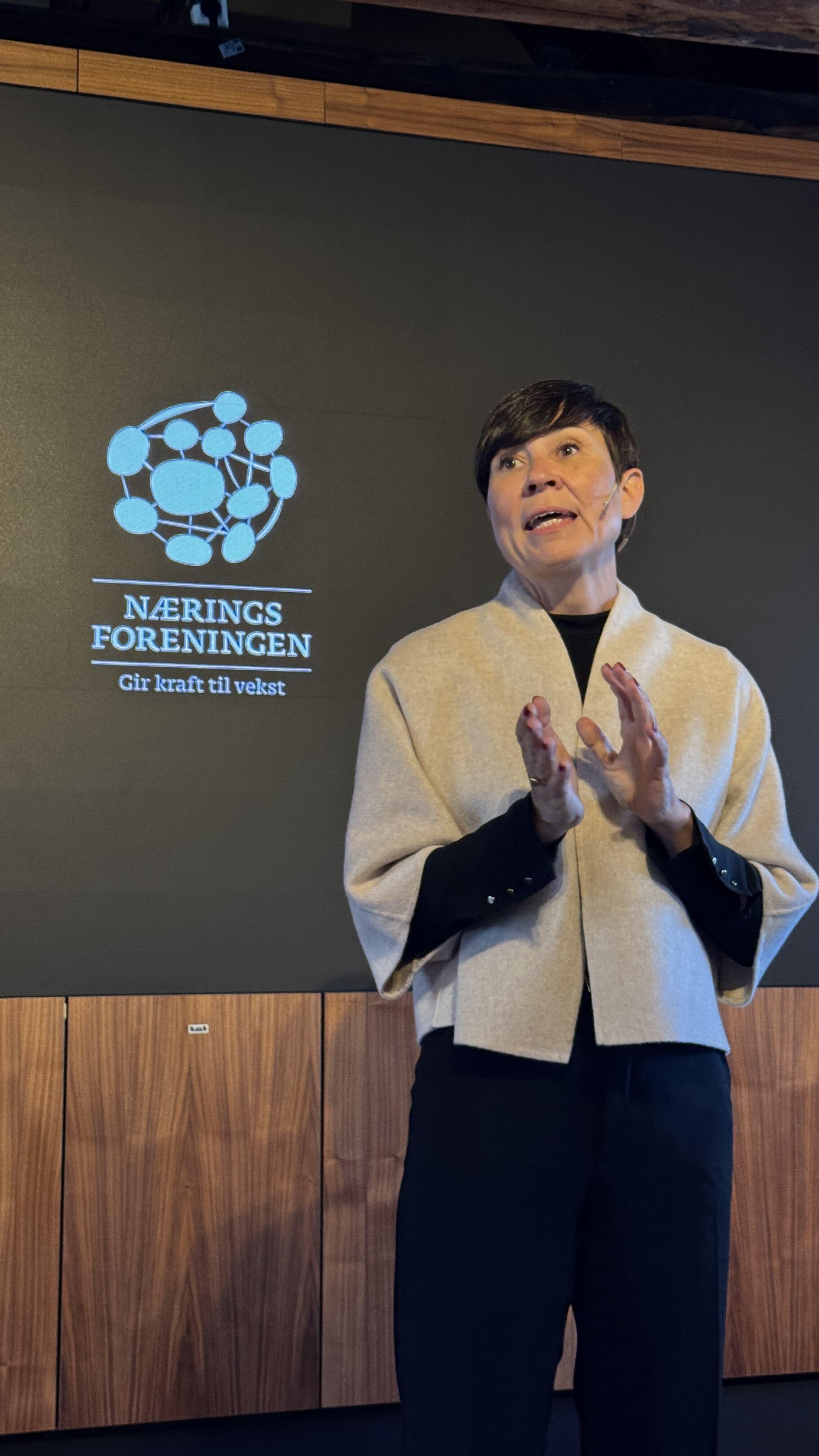 – Jeg får ofte høre at Høyre må ta EU-debatten. Det er ingen politiske partier i Norge som kan bære den debatten alene. Når næringslivet sier det er en viktig debatt, så må næringslivet være med og bære debatten, sier Søreide og kommer med en liten bønn til næringslivet.