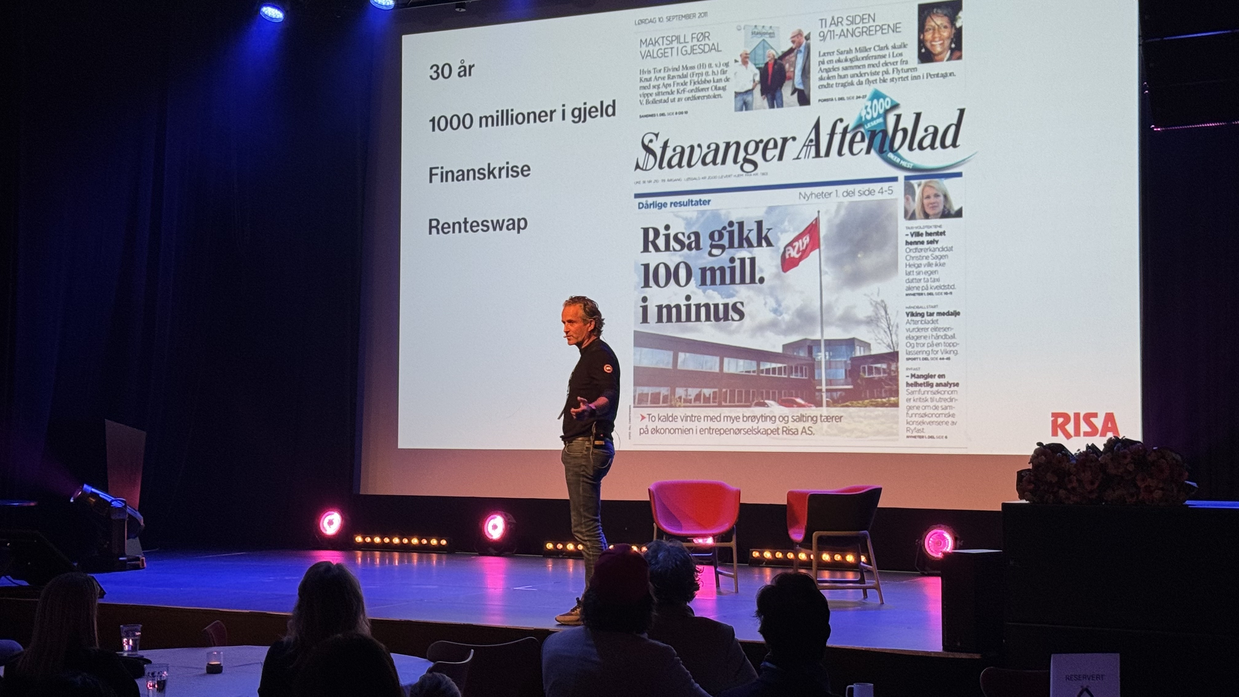 – Den tabben kostet meg 136 millioner kroner. Mens andre hadde lave renter, hadde vi nesten ikke råd til å betale avdragene, sa en åpenhjertig Risa på scenen.