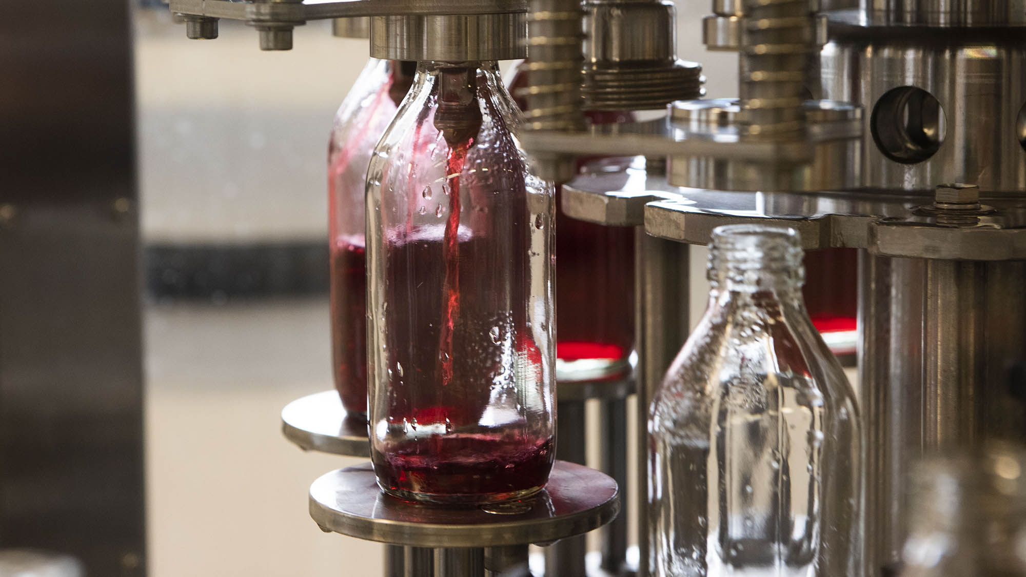 Kranene åpnes og saften strømmer gjennom slangene i Hillevåg. Først varmes saften opp til rundt 80 grader før den tappes på flasker som får kork påskrudd, blir avkjølt, tørket og pakket i esker. Klare for å levers til kunder over hele Norge. 6185 flasker med blåbærsaft ble det denne fredagen.