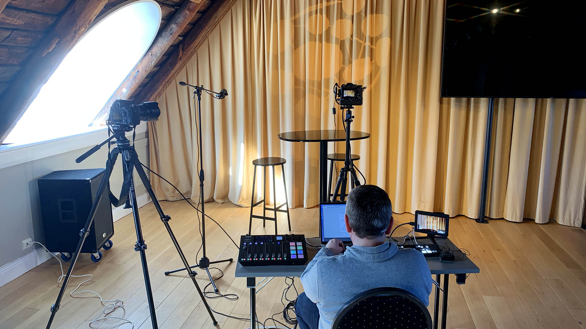 Sendingene starter hver morgen klokken ni i ukedagene. I øyeblikket er det hektisk aktivitet i Rosenkildehuset hvor et studio er under etablering og den tekniske løsningen testes ut.