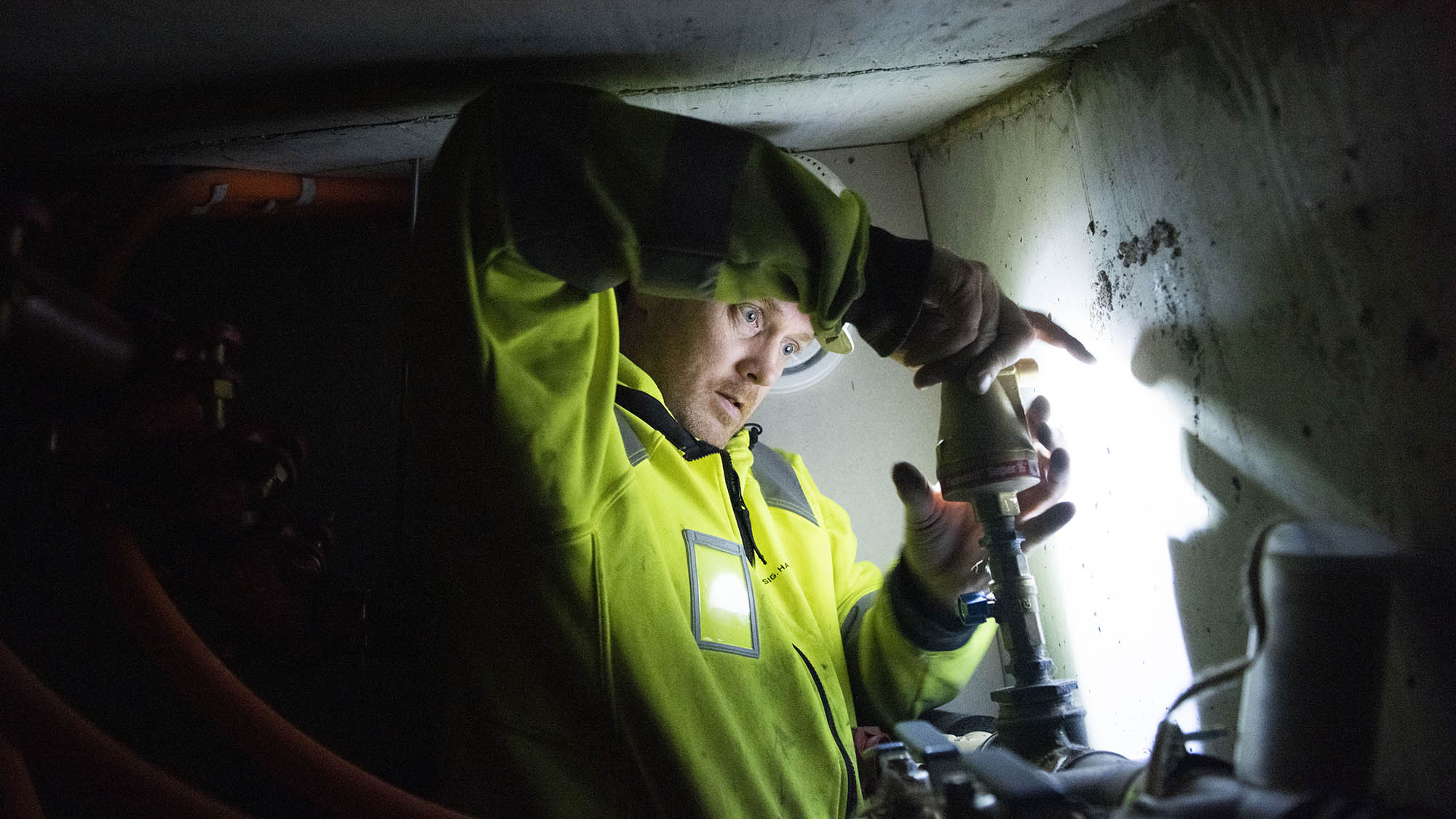 Internett: sig-halvorsen.noInne i et trangt litte rom I tredje etasje på Herbarium i Stavanger jobber lærlingen Harald Jerstad. Han monterer en ventil som skal slippe ut luft, men ikke vann, fra snøsmelteanlegget på bygget. Det siste drøye året han vært lærling hos Sig. Halvorsen, og i løpet av våren 2021 vil han forhåpentligvis ta fagbrev som rørlegger.