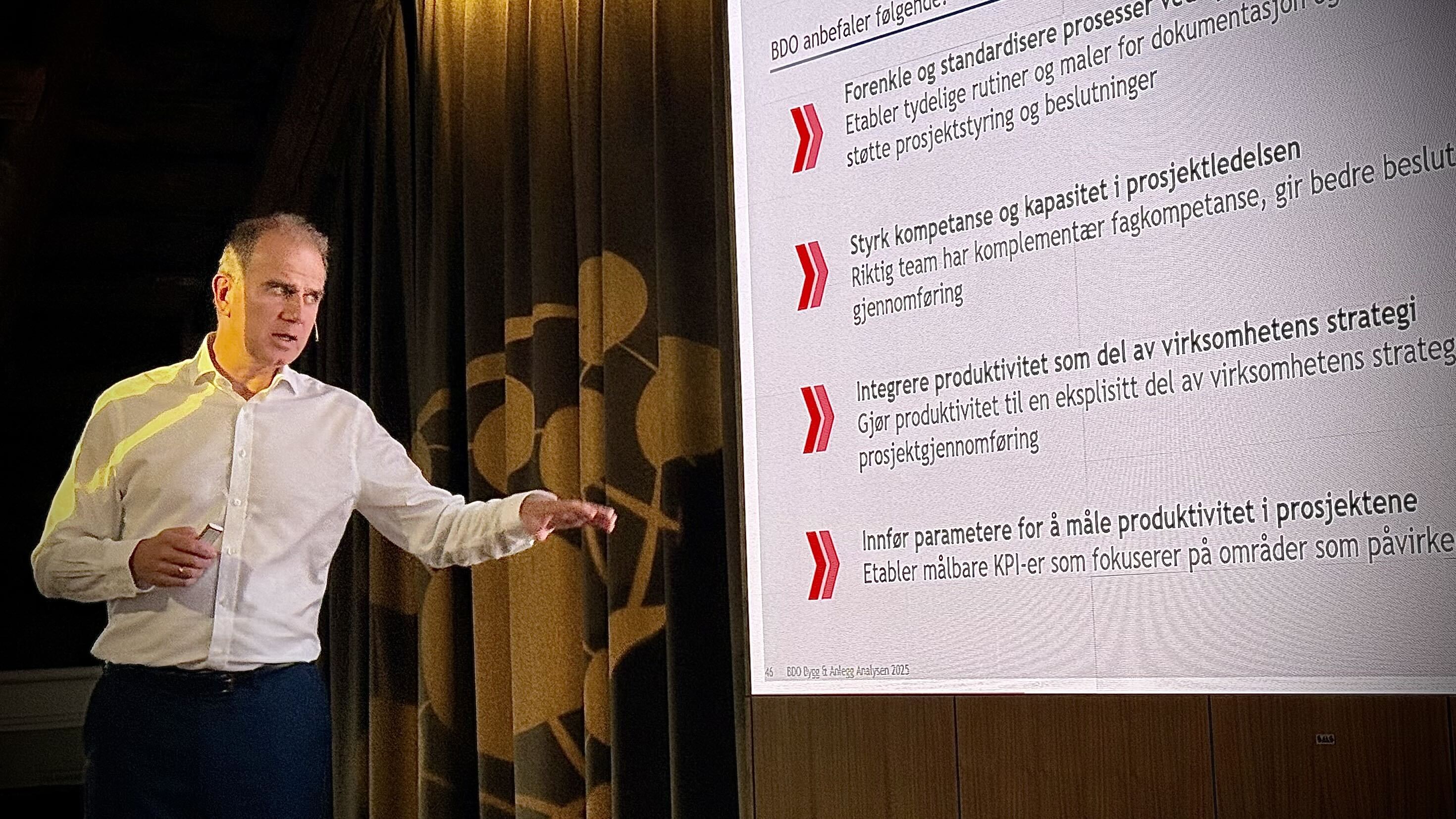 Tirsdag kveld, på Bygg- og anleggsanalysen 2025, ble BDOs ferske rapport om status i bransjen presentert. Siden 2018 har BDO systematisk samlet inn og analysert tall og trender som påvirker utviklingen i bygg- og anleggsbransjen. Årets arrangement på Rosenkildehuset i Stavanger var en norgespremiere, siden den nasjonale Bygg- og anleggsanalysen blir offentliggjort samme dag.