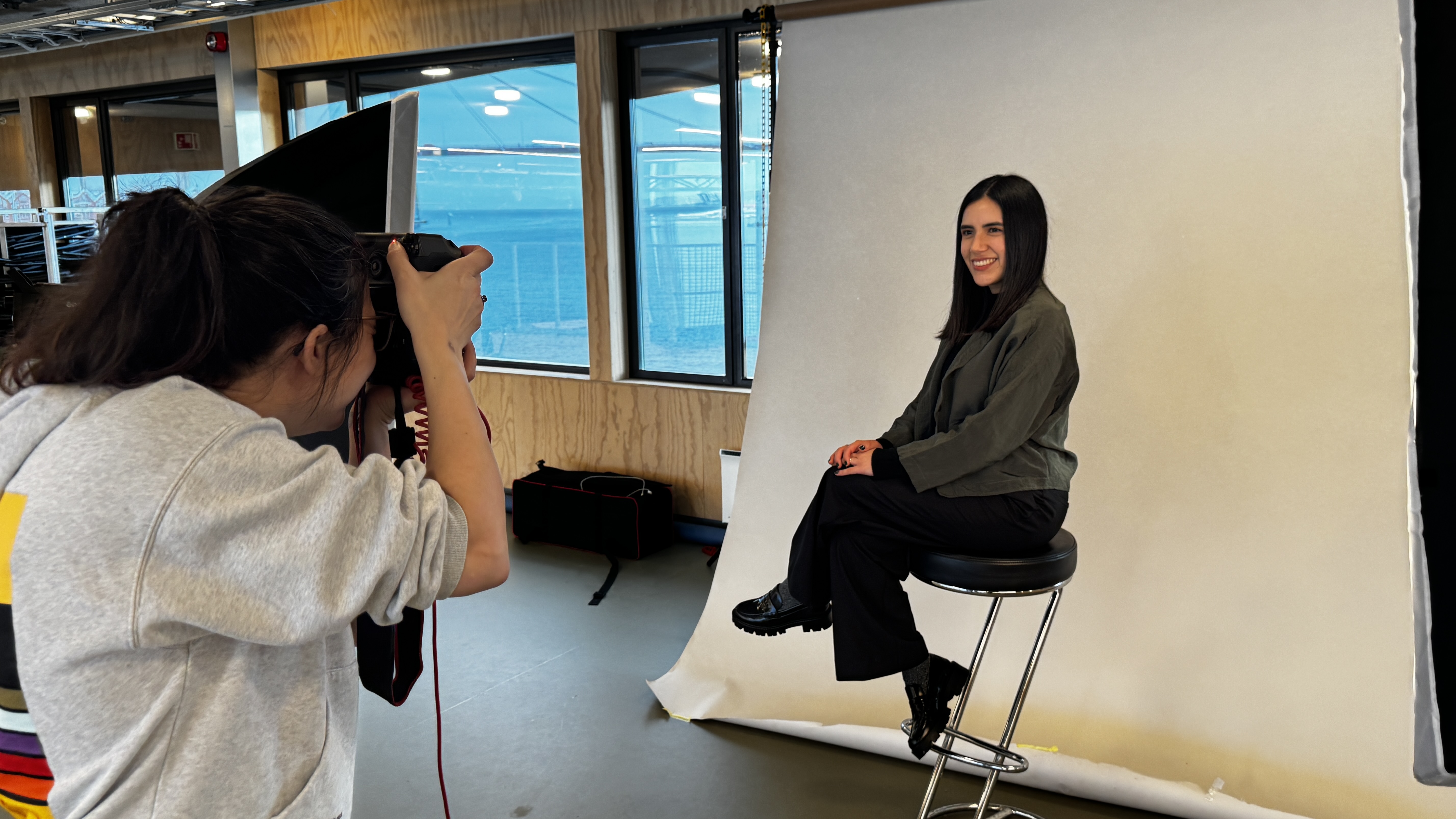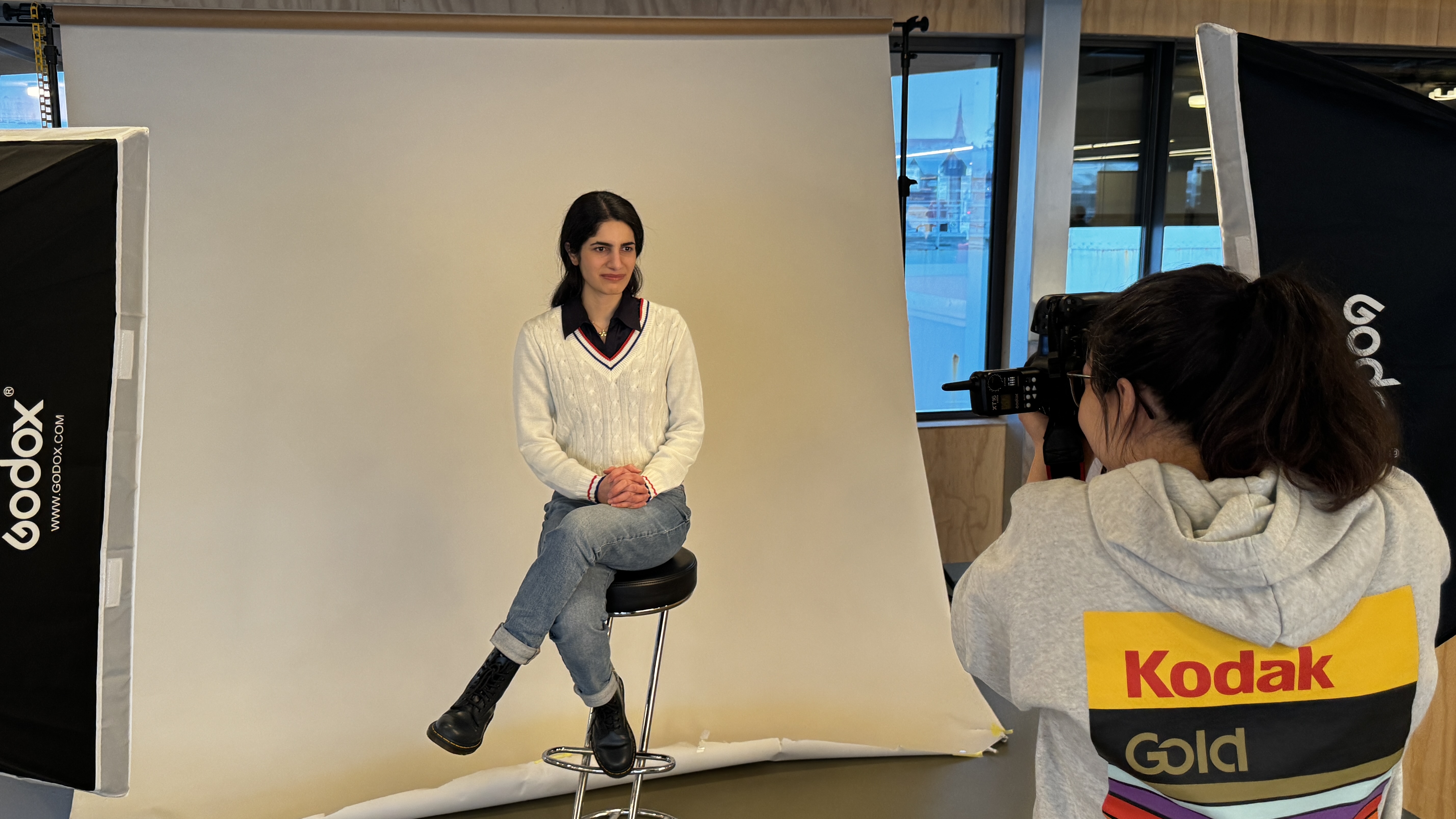De første som kom på Karrieredagen fikk nytt LinkedIn-profilbilde av fotograf Andrea Ribiero. Her poserer Eva Dabouei.